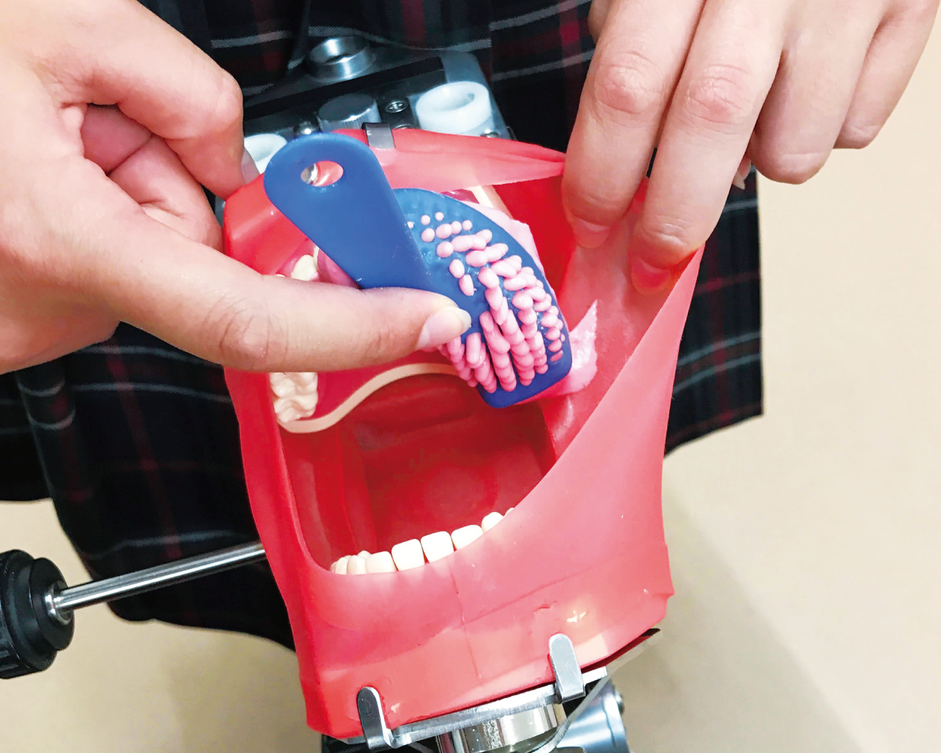 先輩と一緒に、歯の型取り体験にチャレンジ!